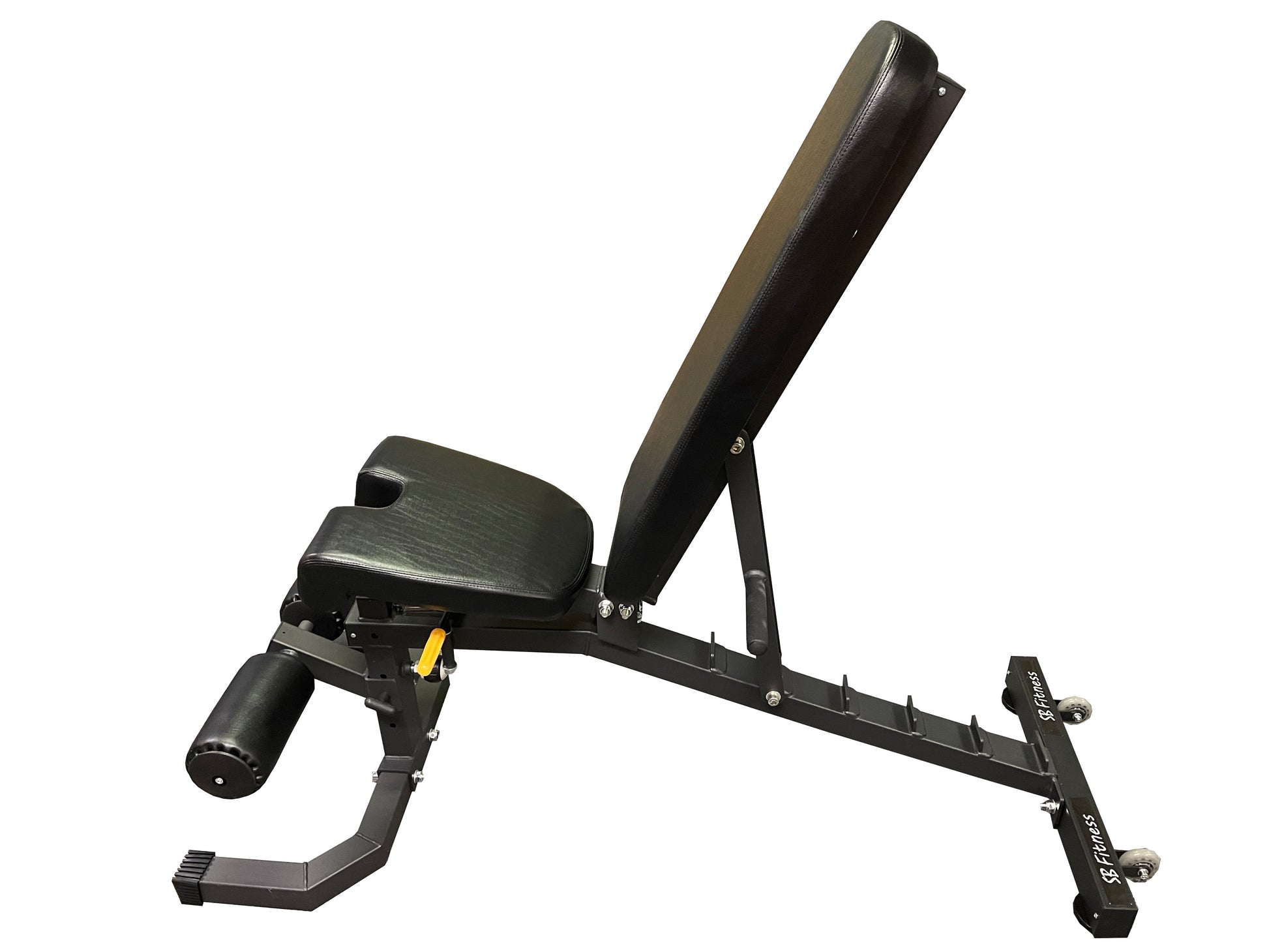 Maximize your home gym potential with the SB Fitness Adjustable FID Bench w/Preacher Curl Attachment. This 3-in-1 bench allows for flat, incline, and decline positions, and its preacher curl attachment helps you target biceps. The bench also converts to an Ab board for extra abdominal support. Enjoy easy mobility with the included transport wheels and adjustable foot/ankle pads for stability. This reliable unit boasts a Lifetime frame with 5 year parts warranty.